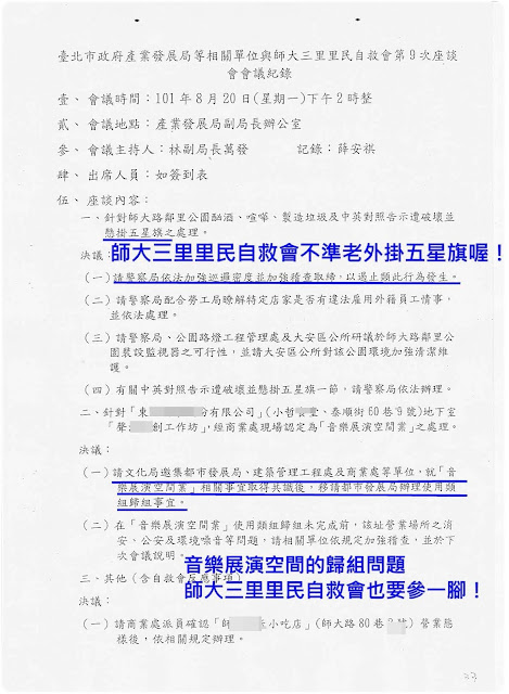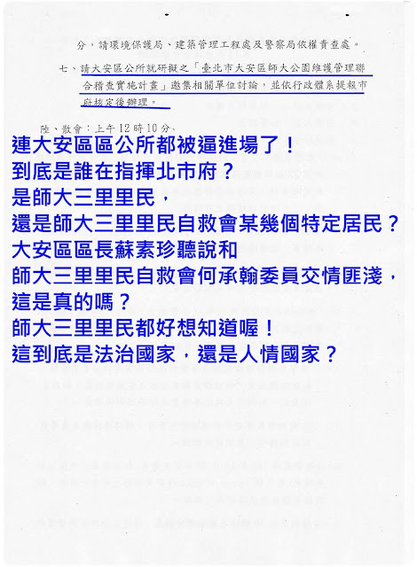 (2012-11-2 師大三里里民自救會部落格 網址:http://shidahood.pixnet.net/blog/post/57797706)
